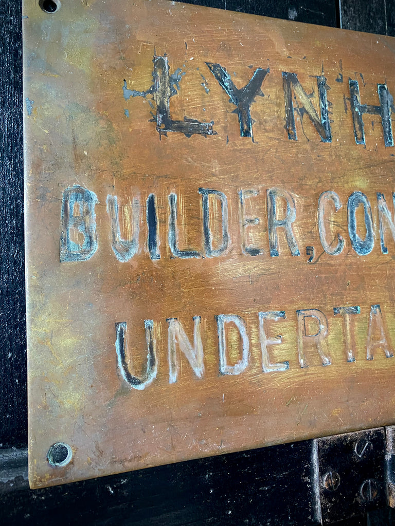 A Rare Antique Late 19th Century Undertaker’s Sign For ‘Lynam, Builder, Contractor, Undertaker & Co.’ Made From Brass With Punched Lettering And Soldering To The Back. It Is Well Weathered And Time Worn, With Lots Of Faults, But It’s Still A Rare Ol’ Thing.