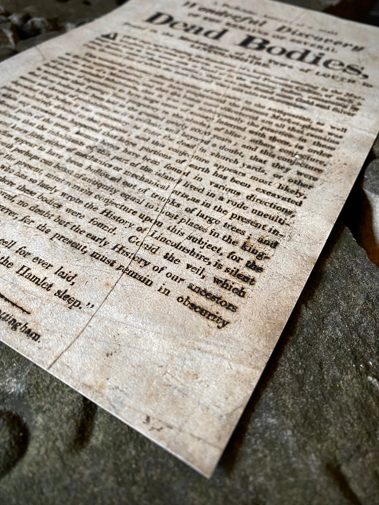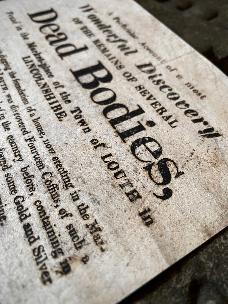 Rare 1823 Broadside – Discovery of Human Remains in Louth Marketplace.