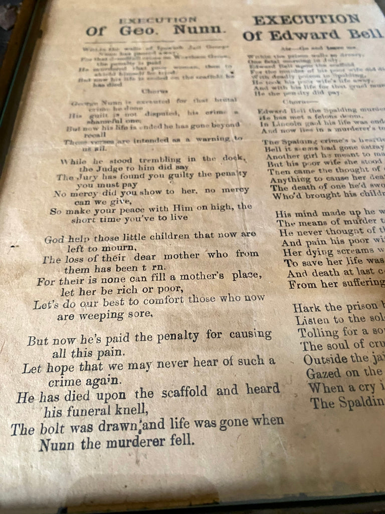 Execution broadsides like this were sold around these events, providing sensationalised details about the crime, trial, and final moments of the condemned.