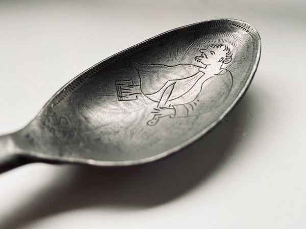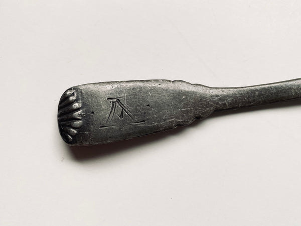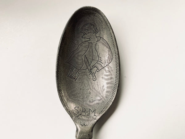 Antique 18th Century Folk Art Wrigglework Engraved Pewter Spoon - St Bartholomew