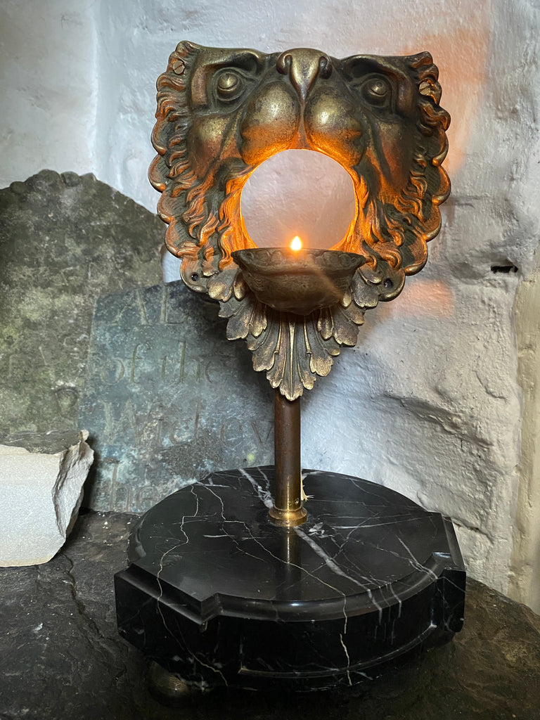 Antique 19th Century Billiard Table Pocket Lion Mounted Magnificently On A Marble Base