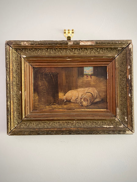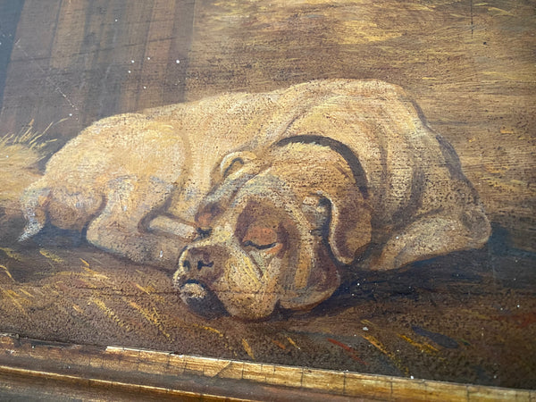 *RESERVED FOR MARYANNE* (Payment 2) Antique Early 20th Century Oil On Board Painting Of A Sleeping Farm Dog