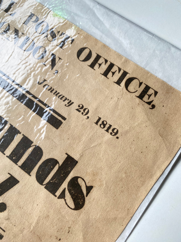 A Rare Antique 19th Century Highway Robbery Reward Poster Issued By The General Post Office, London On January 29, 1819.