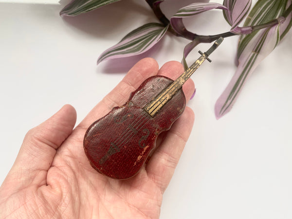 Rare Antique 19th Century Novelty Travelling Inkwell In The Form Of A Cello