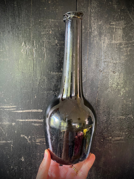 Rare Antique Early 18th Century ‘Flower Pot’ Bodied Free-blown Wine Bottle c.1710-1720